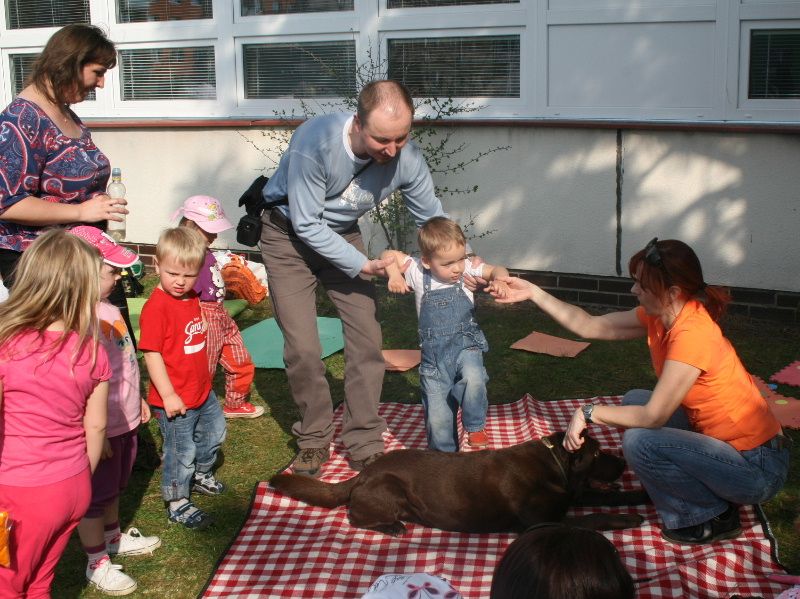 Chovatelka Lenka Herbrichová si s dětmi povídala o životě a chovu pejska, co by měl jíst a co mu škodí, jak je důležité venčení a pohyb pro kondici a nejdůležitější celková poslušnost psa. Pak už nastal přímý kontakt i malých dětí s pejskem.Všichni si mohli si pejska učesat kartáčky, zkusit si podlézt či překročit klidného Daga. Pejsek Dag překvapil aportováním hozených míčků od dětí a sbíráním na položených dětech piškotů, jeho odměnu za práci, kterou předvedl.