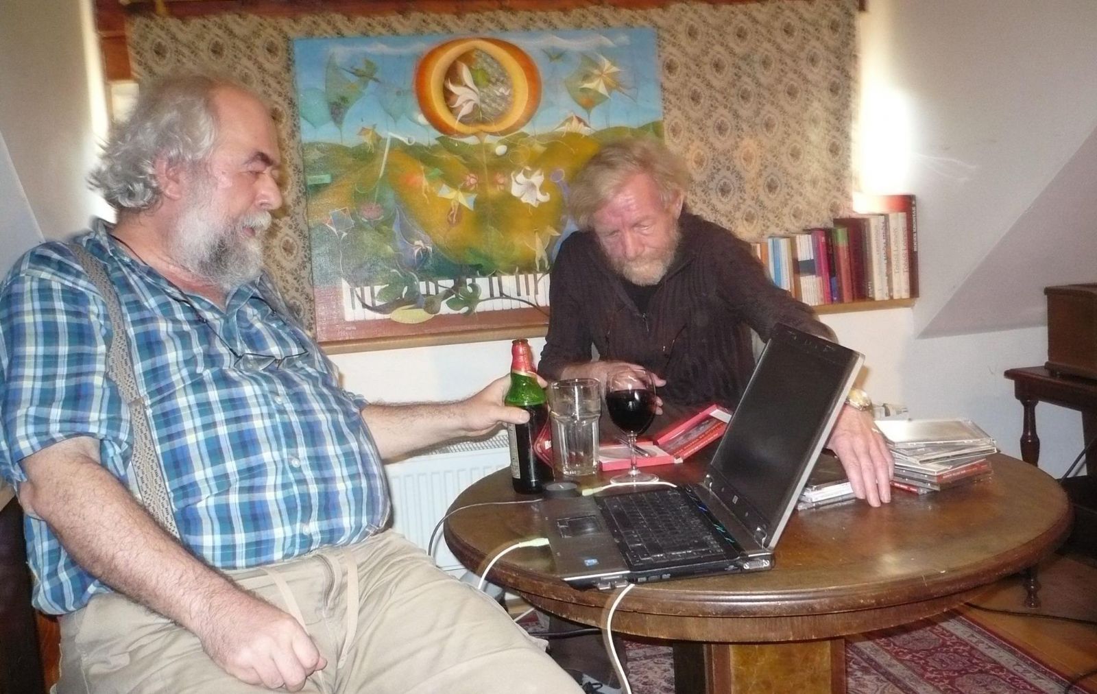 Zleva Jan Schneider pomáhá pouštět CD Janu Rejžkovi