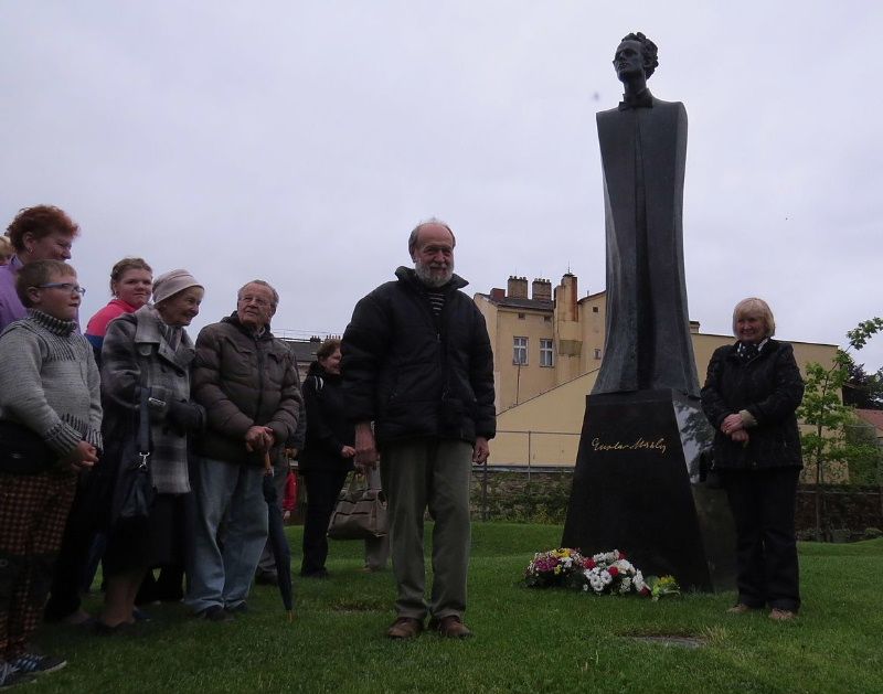Manželé Poukarovi položili květiny k soše G. Mahlera, foto: Mirek Svatoš