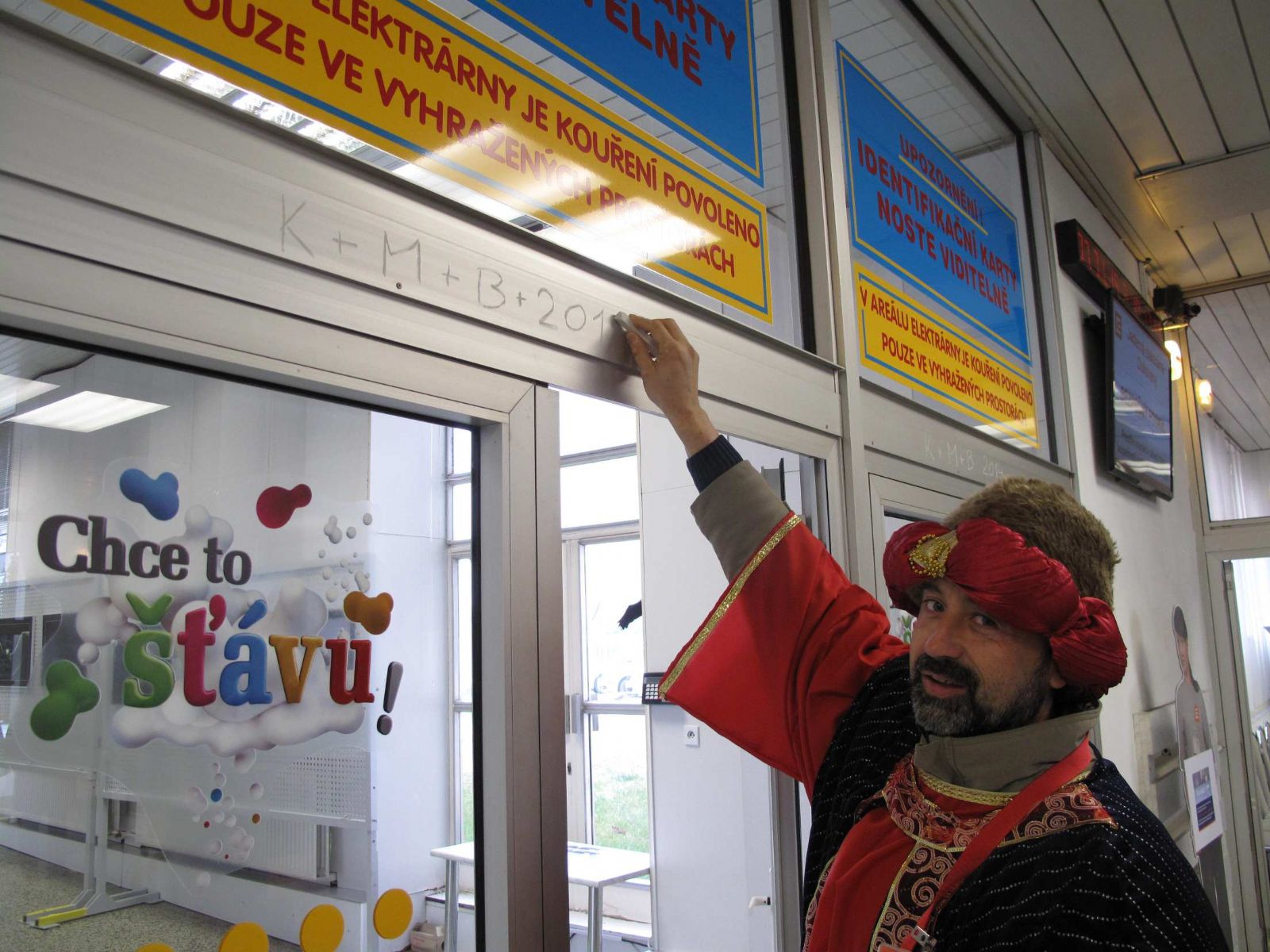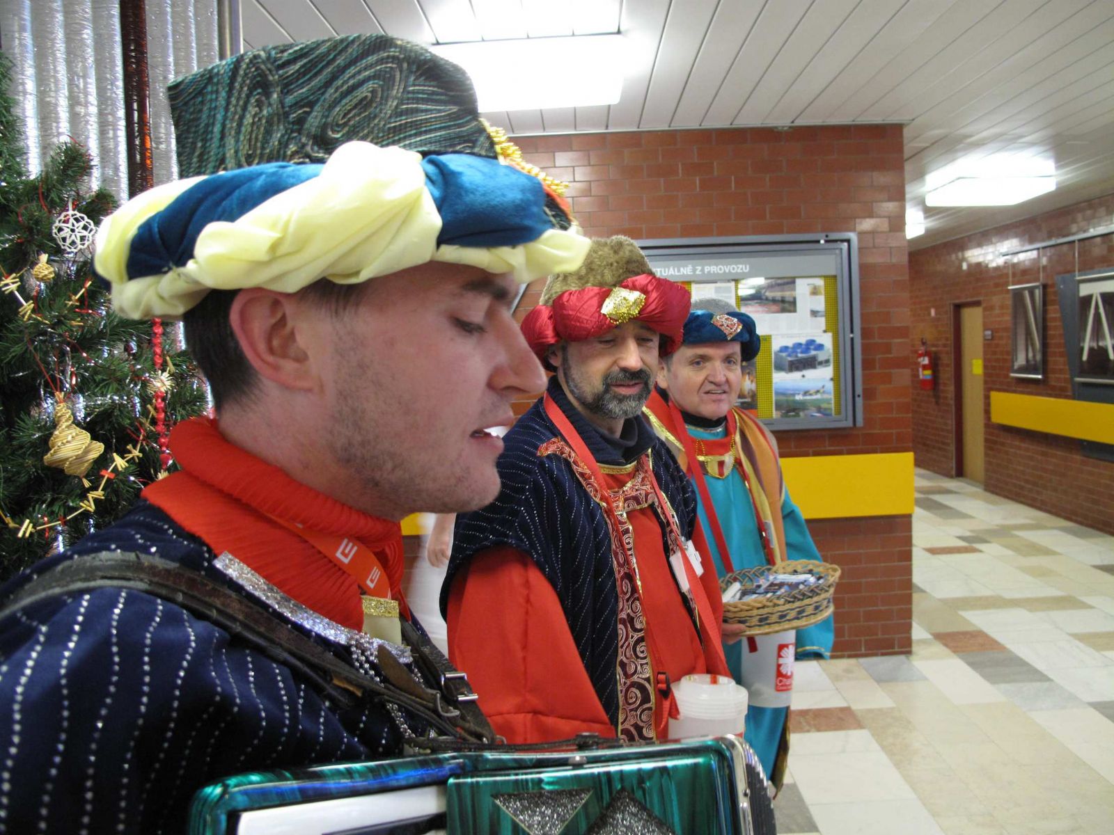 V čase oběda se zaměstnanci elektrárny potkali s koledníky v hale před jídelnou. Za zvuku harmoniky a zpěvu koled se tak mohli připojit k celostátní sbírce na pomoc potřebným. „Dobrý rok vám vinšujem a vše dobré přejem,“ srdečně a s úsměvem prozpěvovali koledníci. Po dvou hodinách koledování byly dvě pokladničky nadité penězi. „Zaměstnanci přispívali drobnými mincemi, městnali do malého otvoru pokladničky stokoruny a vyskytla se i jedna tisícovka. Mockrát děkujeme, jsou zde milí lidé,“ říká Michal Saidl, jeden ze tří králů, který doprovází na harmoniku. Pracuje v Charitě jako sociální pracovník ve stacionáři Úsměv.