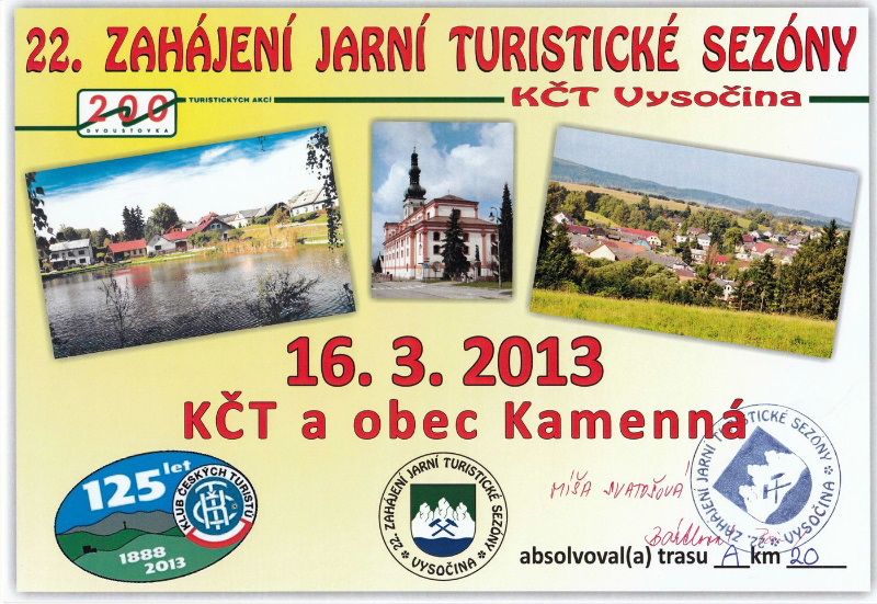 Krásné pamětní listy budou účastníkům připomínat nejen cesty probouzející se přírodou Vysočiny, ale i příkladnou aktivitu kamenských turistů.
