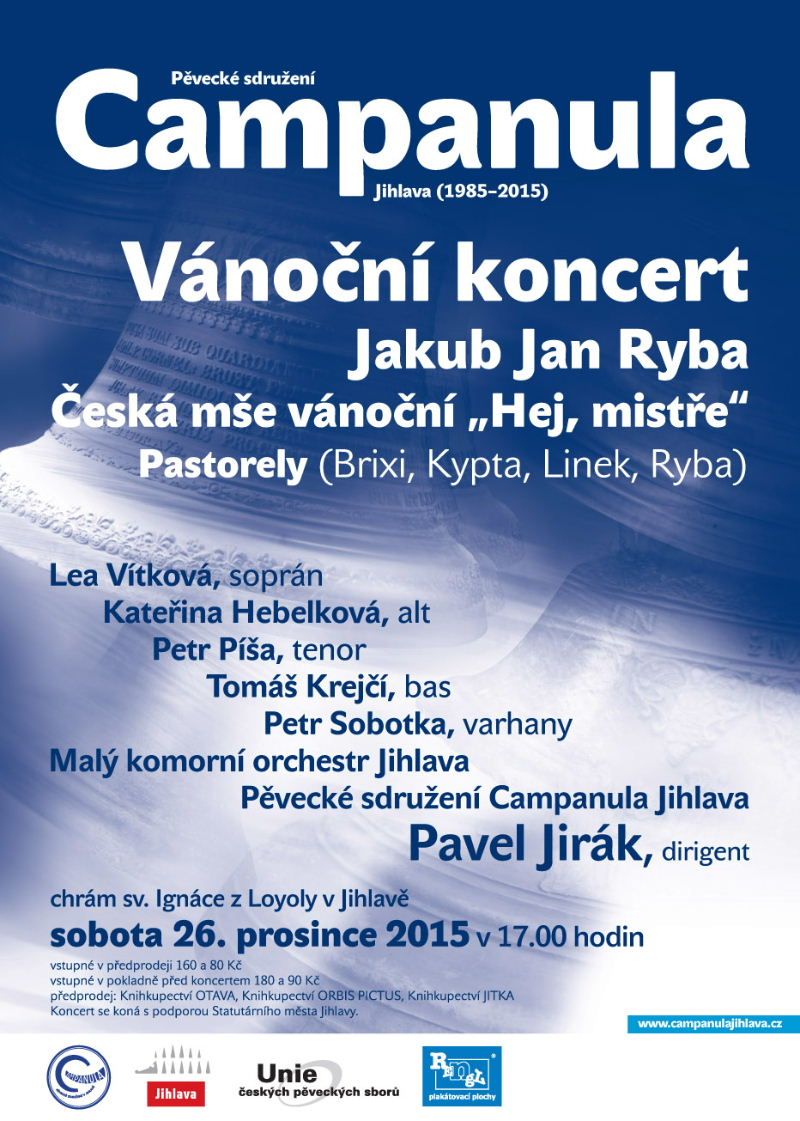 Program koncertu nabídne výhradně českou vánoční hudbu, když zazní pastorely Jana Evangelisty Kypty, Jiřího Ignáce Linka a Františka Xavera Brixiho. Campanula chce však především připomenout 250. výročí narození a 200. výročí úmrtí Jakuba Jana Ryby, jehož oblíbenou Českou mši vánoční Hej, mistře sbor pro letošní koncert opět po dvou letech připravil. Se sborem tradičně spolupracuje Malý komorní orchestr Jihlava a varhaník Petr Sobotka. K této mimořádné příležitosti získal dirigent Pavel Jirák pro interpretaci sólových partů kvartet výrazných pěveckých osobností s blízkým vztahem k Jihlavě.