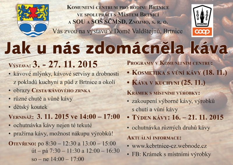 středu 25. listopadu využití kávy v kuchyni v prostorách Komunitního centra Brtnice.