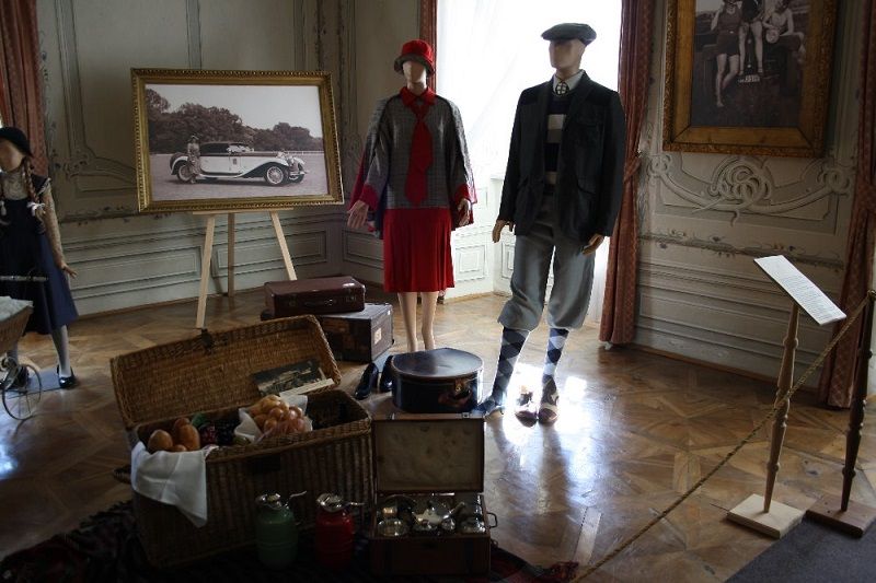 Z trojrozměrných předmětů zaujmou návštěvníky dva historické motocykly značky ČZ a Ogar, velká šlapací auta dětí šlechticů, autíčka jako hračky a samozřejmě dobové oblečení (motorista musel mít masku na obličej, speciální brýle a oblečení, které mu umožnilo nejen pohodlnou jízdu, ale zároveň mu umožnilo případnou opravu auta při cestě…) a také cestovní zavazadla. V jedné z místností je nainstalována dobová zámecká autodílna.