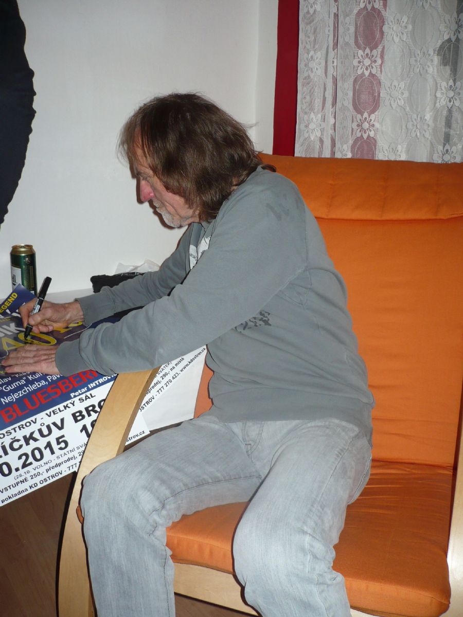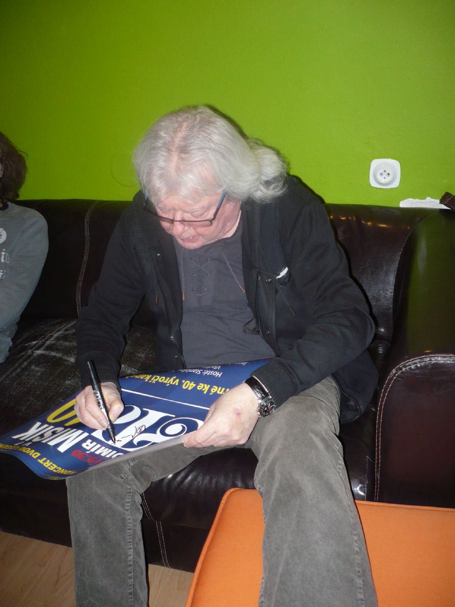 Vladimír Mišík podepisuje plakát