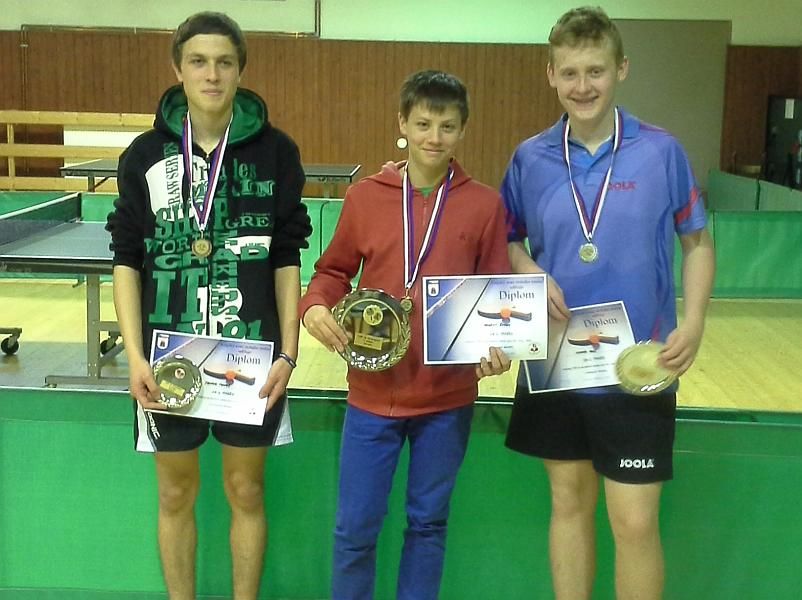 Pořadí závěrečného turnaje TOP 10 dorostu: 1. Šimon Jadrný (SK Jihlava) 2. Aleš Novák (Jiskra Havlíčkův Brod) 3. Tomáš Trnka (Jiskra Humpolec) 4. Dominik Lengal (SK Jihlava) 5. Šárka Pikolonová (Sokol Brtnice) 6. Vít Brukner (Jiskra Humpolec) 7. Aleš Krčil (Jiskra Humpolec) 8. Petr Kmoch (Jiskra Humpolec) 9. Martin Jirásek (Jiskra Havlíčkův Brod) 10. Jan Pazdera (Jiskra Havlíčkův Brod) Konečné pořadí Poháru Vysočiny 2014-2015 v kategorii dorostu: 1. Aleš Novák (Jiskra Havlíčkův Brod) - 693,5 b. 2. Šárka Pikolonová (Sokol Brtnice) - 509,9 b. 3. Šimon Jadrný (SK Jihlava) - 458,5 b. 4. Tomáš Trnka (Jiskra Humpolec) - 431,3 b. 5. Vít Brukner (Jiskra Humpolec) - 309,3 b. 6. Dominik Lengal (SK Jihlava) - 295,4 b. 7. Daniel Bárta (Jiskra Havlíčkův Brod) - 276 b. 8. Aleš Krčil (Jiskra Humpolec) - 261,88 b. 9. Marek Čermák (SK Telč) - 246,2 b. 10. Petr Kmoch (Jiskra Humpolec) - 241,98 b. Na titulní fotografii tři nejlepší dorostenci letošního ročníku Poháru Vysočiny - zleva Jadrný, Novák a Pikolonová (foto: Jiří Krčil)Autor: Martin Pluhař