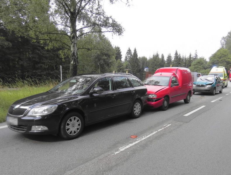U místa, kde k havárii automobilu došlo, se střetla ještě další tři auta. „V době, kdy policisté havárii automobilu Fiat řešili, sahala až k místu dopravní nehody kolona aut, která se vytvořila za semaforem umístěným před nedalekým budovaným kruhovým objezdem. Po čtvrté hodině odpoledne přijížděla ve směru od Jihlavy ke koloně padesátiletá řidička automobilu Škoda Fabia, která nedodržela bezpečnou vzdálenost za vozem VW Caddy jedoucí před ní, jeho řidič kvůli koloně zastavil. Došlo ke srážce, po nárazu bylo auto VW odhozeno dopředu, kde narazilo do vozu Škoda Octavia,“ dodala Jana Kroutilová. Při dopravní nehodě se řidička zranila a na ošetření musela být převezena do jihlavské nemocnice. Policisté u řidičů dechovou zkouškou u všech tří řidičů požití alkoholu vyloučili. Škodu, která vznikla na vozech, předběžně vyčíslili na 120 tisíc korun. „Řidička fabie se dopustila dopravního přestupku, za který jí policisté uložili blokovou pokutu,“ uzavřela mluvčí.