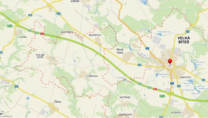 - z exitu 153 po silnici II/390 na křižovatku se silnicí II/602, odtud po silnici II/602 do Velké Bíteše, po silnici I/37 až exitu 162, kde je doprava navedena zpět na dálnici D1 směr Brno.