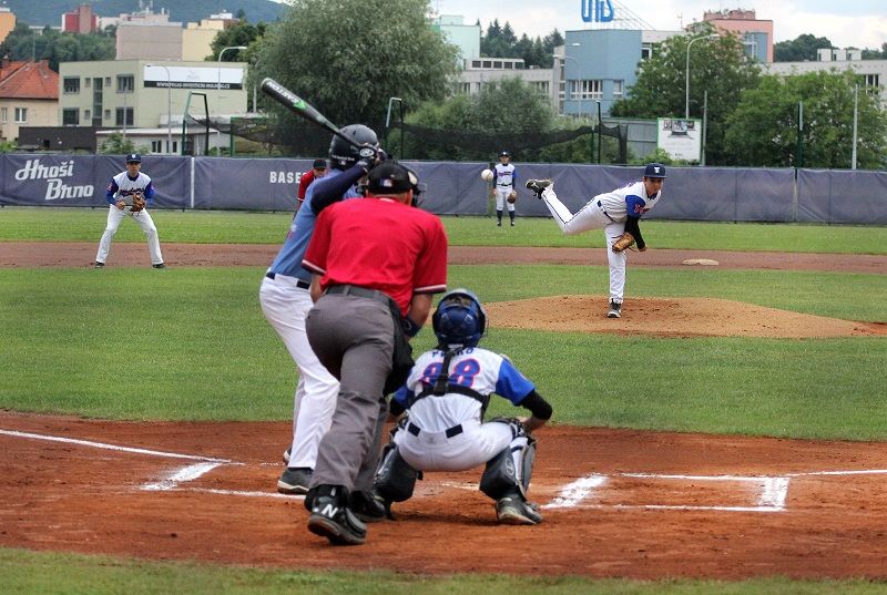 Finále Českého baseballového poháru kadetů se po nedělním přerušení kvůli dešti dohrávalo následující den na hřišti Hrochů v Brně