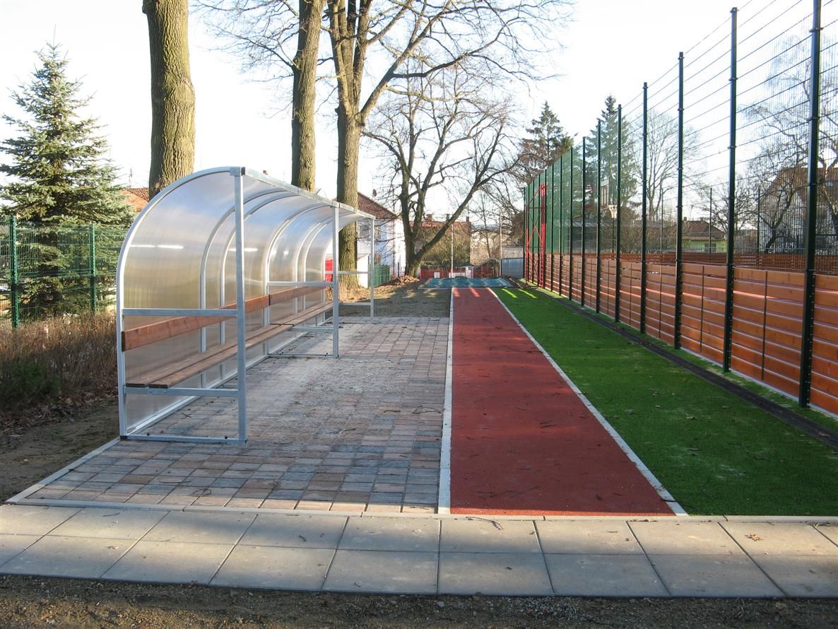 V areálu školy jsou nové chodníky, nové oplocení a krytá střídačka, sklad sportovního vybavení a další potřebný mobiliář.