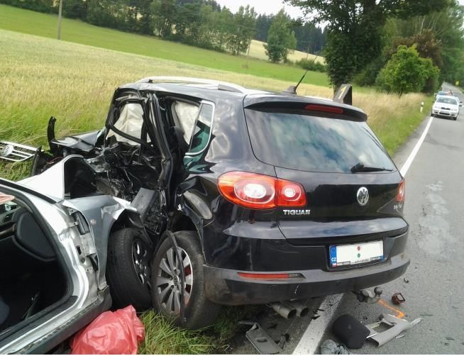 V úterý po půl čtvrté dopoledne se mezi Telčí a Třešťí na křižovatce u odbočky na Třeštice na silnici II/406 střetla dvě osobních auta - VW a Audi.