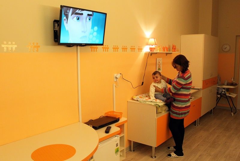 V pokoji mají dvě děti novou postýlku a jejich doprovod rozkládací pohovku. Vyměnila se podlaha a nábytek, zútulnila koupelna. V místnosti nechybí televize a doplňky laděné do oranžové barvy.