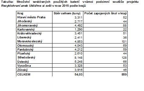 Sběr baterií podpořil také tradiční úkol. Děti si zopakovaly, co jsou to baterie, jak fungují, k čemu slouží a proč je potřebná jejich recyklace. Z každých sto kilogramů vybraných baterií bude recyklací získáno přibližně 65 kilo kovonosných druhotných surovin. Ty budou opětovně využity při výrobě nových produktů, například pozinkovaných popelnic či střešních okapů. V podzimní soutěži bylo i speciální zadání – děti měly za úkol upozornit rodiče a obyvatele v okolí školy na 1. Evropský den recyklace baterií, který společně 9. září 2015 oslavili. Přínos takových aktivit je podle Petra Kratochvíla nepopiratelný. „Školy se na celkovém sběru použitých baterií v celé republice podílejí významnou měrou už několik let. Například v roce 2014 to bylo dvanáct procent z celkového množství zpětně odebraných baterií. Podobný podíl škol lze očekávat i za rok 2015.“