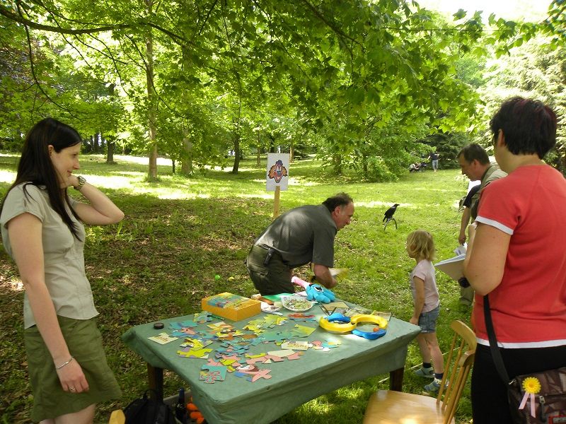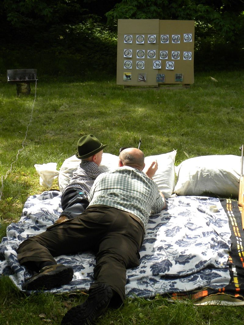 Vladimír Havel názorně ukázal vábení zvěře a Václav Augustin představil sokolnictví a své ptačí svěřence. Mezi ukázkami mohly děti procházet jednotlivá soutěžní stanoviště, kde poznávaly stopy a trofeje zvěře, poznávaly dřeviny, zahrály si myslivecké pexeso, hledaly zvěř dalekohledem v parku, střílely ze vzduchovky, malovaly a nebo si zahrály házecího panáka. Děti za splněné úkoly dostaly drobné sladké odměny a vyřezávané zvířátko. Soutěžní úkoly splnilo více jak šest desítek dětí. Závěr ohlásili opět trubači.Autor: Lenka Hyršová