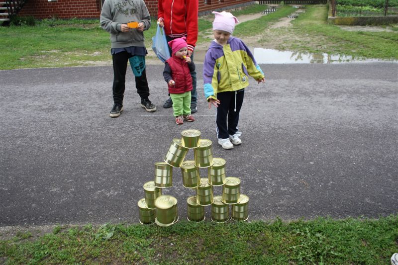 Soustředění a jemnou práci rukou vyžadovalo zachycení kelímku od jogurtu háčkem uchyceným na provázku s dřevěnou tyčkou. I tam byly děti šikovné a čekaly je pěkné odměny. Součástí sportovního zápolení byl běh s kopacím míčem mezi kužely. To už nebylo až tak jednoduché a míč se od některých nohou zakutálel dál, než bylo třeba.