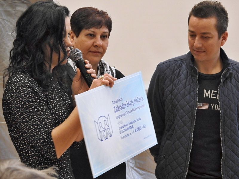 Zaměstnanci školy zde také předali nadačnímu fondu Šťastná hvězda šek s částkou 4000 Kč, kterou chtějí přispět na léčbu nemocným dětem.