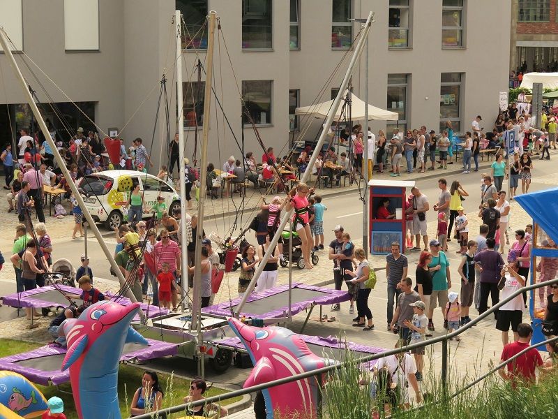Dni dětí v areálu bývalé Baťovy továrny v Třebíči-Borovině navštívilo v sobotu 28. května odpoledne asi 2500 lidí.