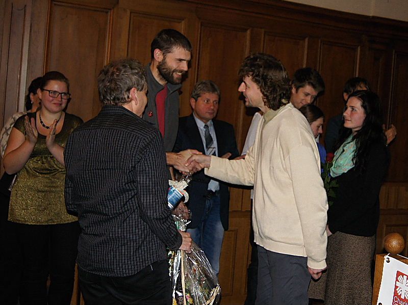 Úvodní foto: První tři ocenění: zleva Ondřej Kaláb, Jaroslav Honěk, Jaromír Srp