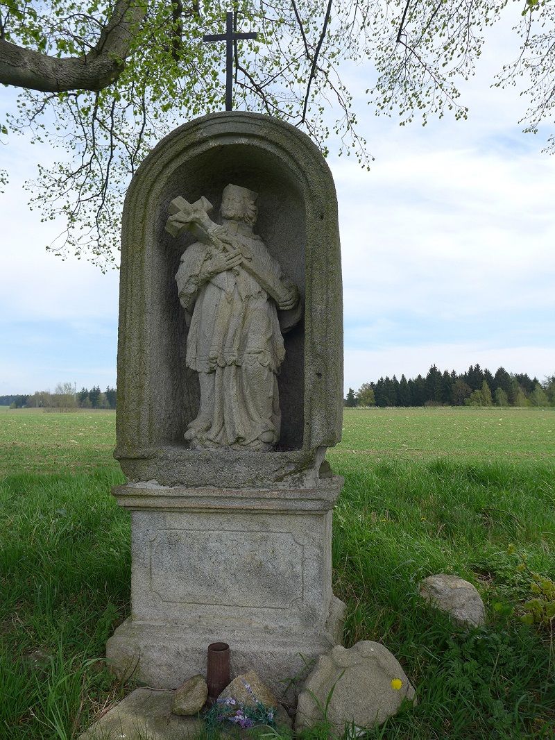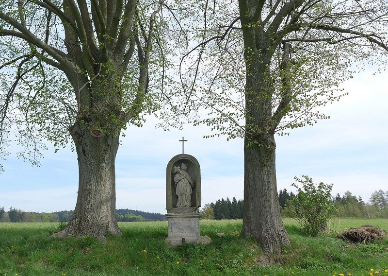 Nachází se v polích jihovýchodně za Radostínem na mírném návrší mezi dvojicí vzrostlých lip, u dnes zaniklé cesty. Socha je umístěna v kamenné kaplici, která stojí na kamenném soklu. Jde o cenné umělecko-řemeslné dílo z roku 1734. Tato práce neznámého autora, která se naprosto vymyká z obvyklé produkce kraje, je dokladem svébytného uměleckého pojetí. Jedinečnost zpracování ještě umocňuje umístění sochy mezi mohutnými lípami na návrší za obcí u dnes zaniklé cesty, která byla zakreslena na císařském otisku stabilního katastru z roku 1838. Tím socha získává také významnou historicko-dokumentační hodnotu, jež dokládá existenci a polohu původní historické komunikace spojující jednotlivé sídelní útvary.