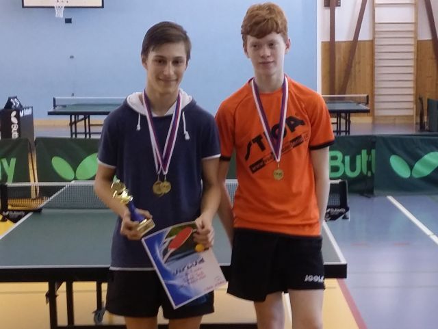 Tomáš Tecl měl šťastný den, k individuálnímu úspěchu přidal druhou zlatou ve čtyřhrách společně s oddílovým spoluhráčem Martinem Karlem. Ve finále přehráli havlíčkobrodský pár Pavel Pazdera - Zdeněk Trtík.