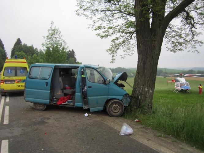 Křelovicím na Pelhřimovsku. „Zdravotníci transportovali řidiče dodávky, který se při havárii zranil, letecky do brněnské nemocnice.