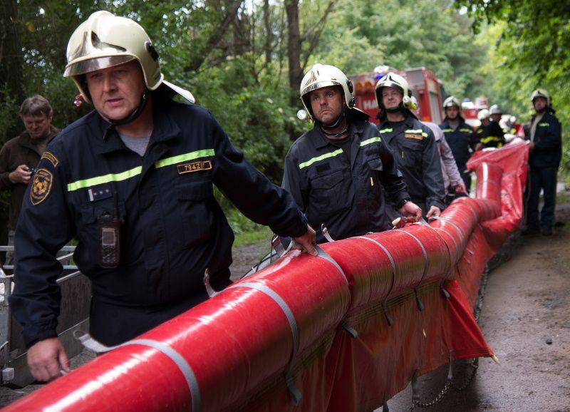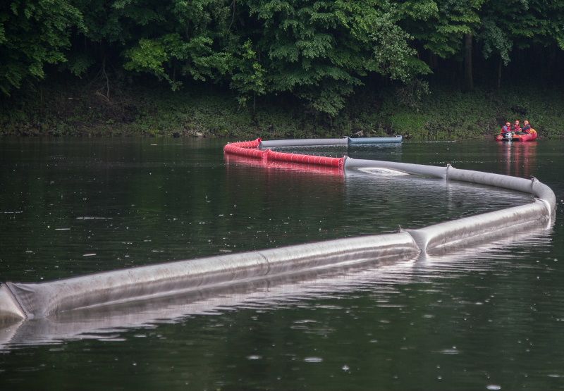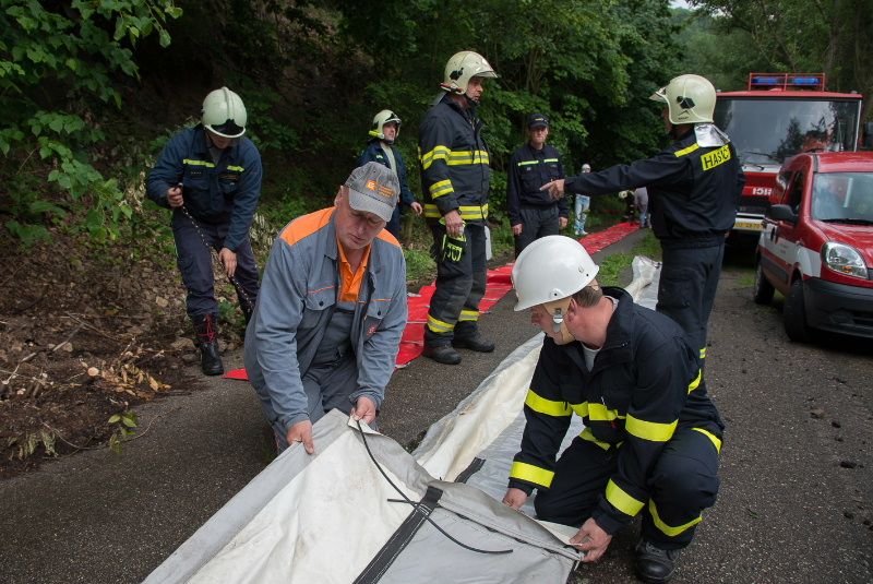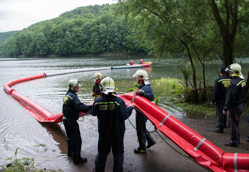 Nejen vydatný přívalový déšť a vítr přispěl k plné vytíženosti hasičů, ale také hlášení o úniku oleje do vývaru přečerpávací vodní elektrárny Dalešice zaměstnalo dalších dvě desítky hasičů při záchytu více jak 500 m² velké olejové skvrny na hladině spodní nádrže dalešické elektrárny.