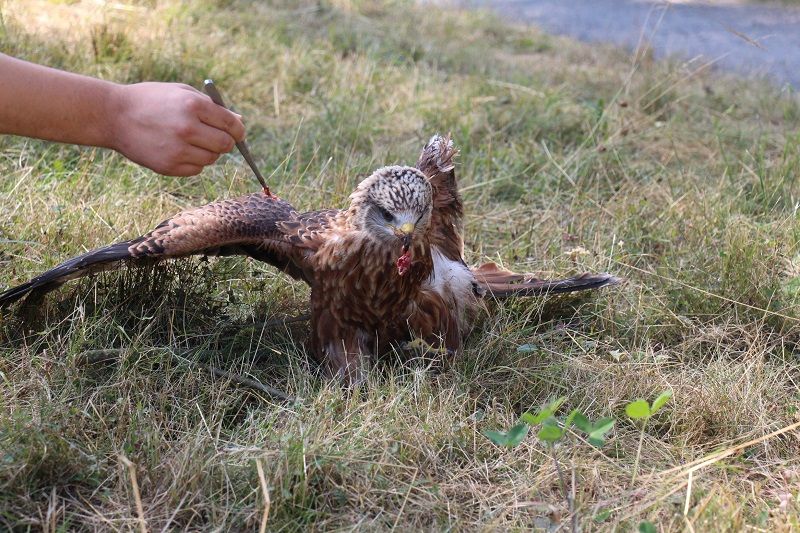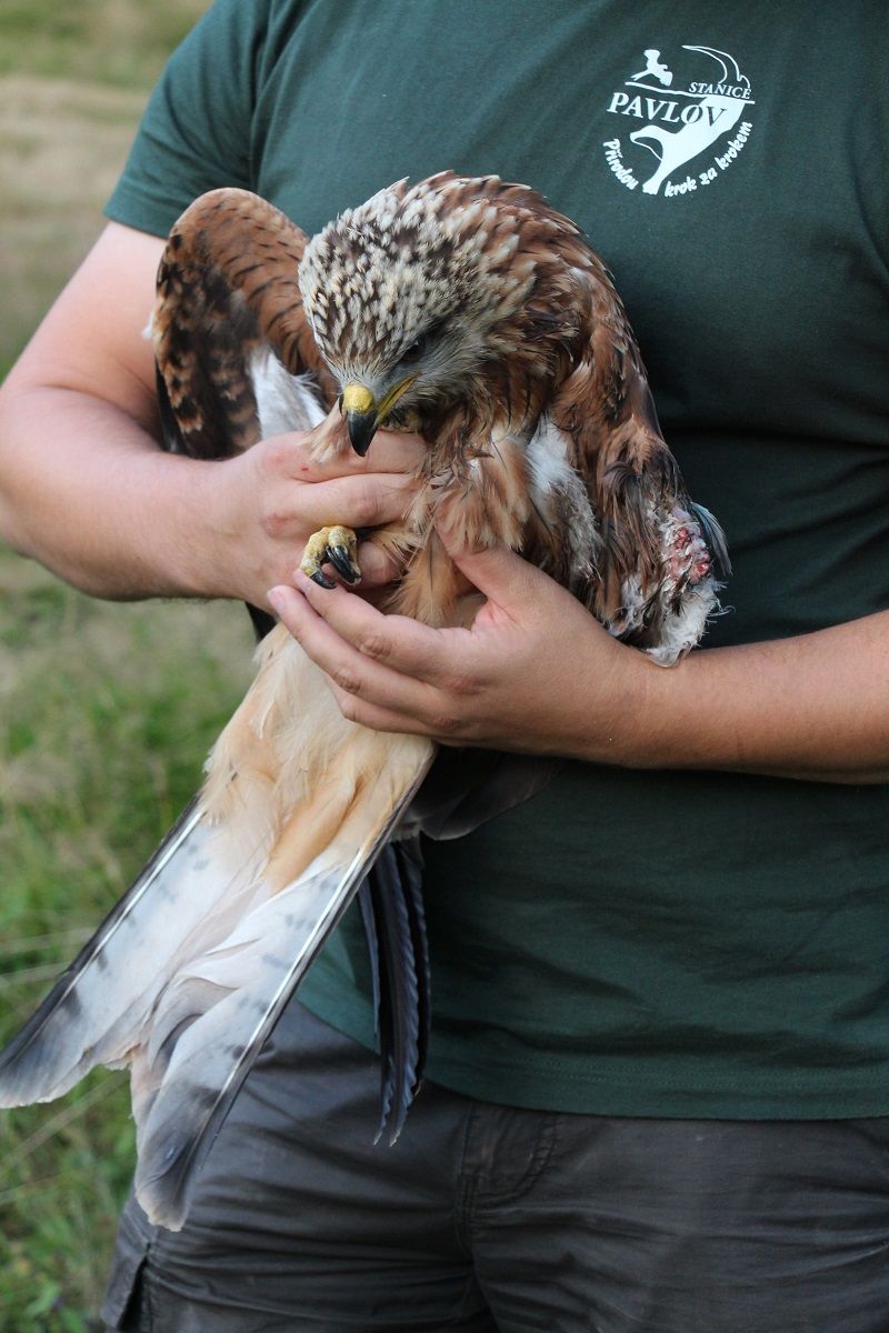 Pozdní telefonát o nálezu zraněného luňáka červeného přijatý centrálním dispečinkem roztočil kolotoč událostí. Přesto, že bylo už po 21 hodině večerní, hovor následně přijala i nejbližší záchranná stanice Pavlov, kde její pracovník neváhal a pro zvíře vyjel. Jaké bylo jeho překvapení, když na místě objevil opravdu letošní mládě luňáka červeného. Zvíře bylo naprosto vyčerpané, vážilo zhruba 600 gramů. Na křídle mělo už značně nekrotizovanou ránu prolezlou červy způsobenou zásahem elektrického proudu, což nasvědčovalo tomu, že ke svému zranění přišlo zhruba před čtyřmi dny a bez pomoci ho čekala dlouhá krutá smrt.