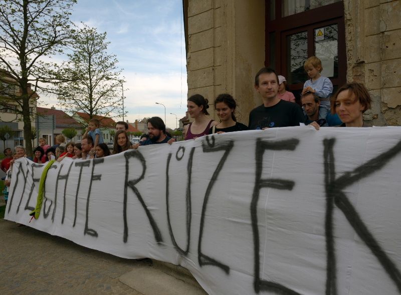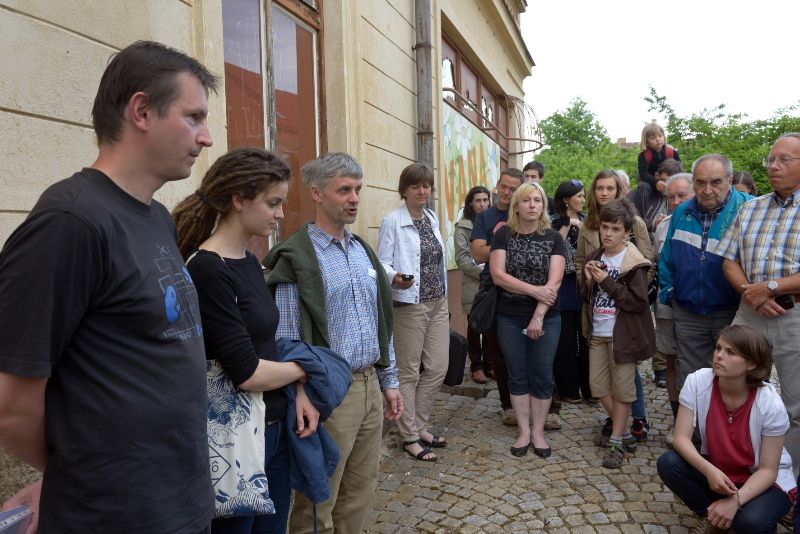 Před budovou bývalého hotelu U Nádraží v Telči se uskutečnil v pondělí 23. května happening na podporu jejího zachování.