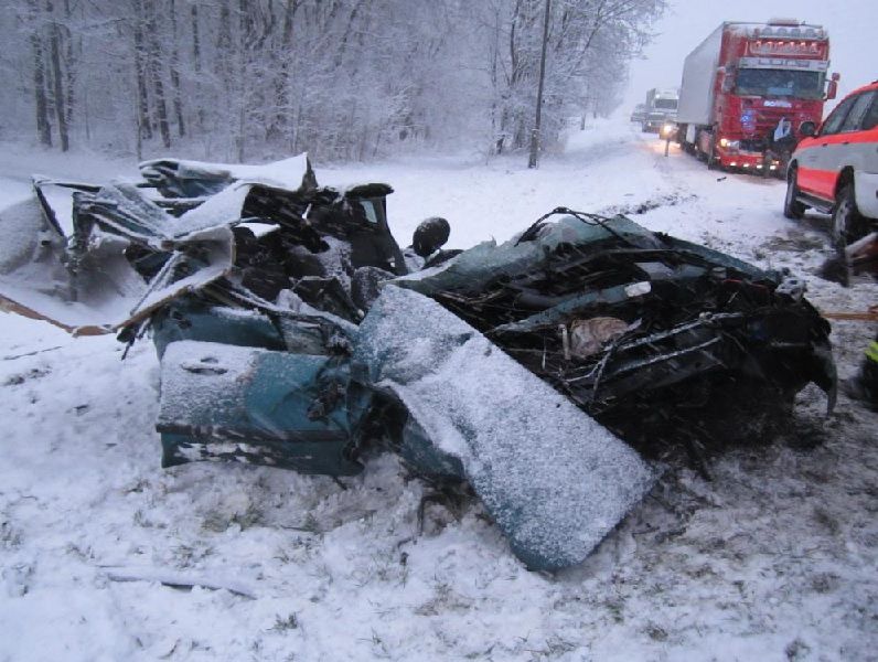 „Třiapadesátiletý řidič nákladního vozu Scania s návěsem projížděl ve směru od Havlíčkova Brodu na Jihlavu. V klesání dostal na silnici pokryté čerstvě napadaným mokrým sněhem smyk a přitom vyjel vlevo do protisměru, kde ve smyku narazil do přední části protijedoucího osobního vozu Ford Focus. Po střetu vyjela nákladní souprava vlevo mimo silnici do silničního příkopu a na pole, kde se zastavila. Osobní auto skončilo vpravo mimo komunikaci v silničním příkopu,“ doplnila Dana Čírtková, tisková mluvčí krajských policistů na Vysočině.