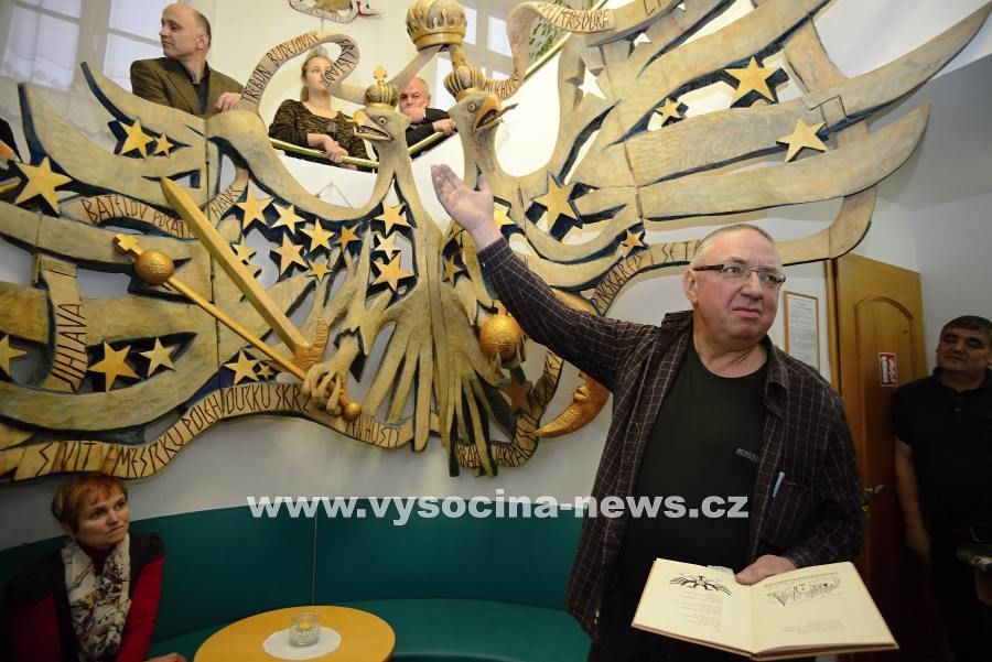 Nová socha je podle slov autora zajímavá brodenzie s havlíčkovskou tematikou. „Tvoří ji habsburský orel, jehož korunovační stužka je prodloužena na dvanáct metrů šířky díla,