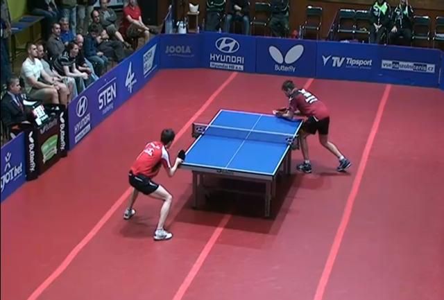 Šimončík rozehrál svou bitvu s Treglerem skvěle, v první sadě vedl 8:6, ale s koncovkou měl tradičně problém a v následujících pěti míčcích nebodoval ani jednou. Do zápasu se vrátil vítězstvím ve druhém setu, jenže ve třetím během chvilky prohrával 1:8 a nakonec i 4:11. Ve čtvrtém stále doháněl mírný náskok soupeře, ale bojoval příkladným způsobem, žádný míček nebyl ztracený, a tak byly k vidění úžasné výměny. Za stavu 6:8 sice uklouzl, přesto dokázal zahrát vítězný míček téměř v sedě. V koncovce odvracel tři mečboly soupeře, dvakrát úspěšně, ale po třetím zvedal ruce ve vítězném gestu hráč z Kotlářky.