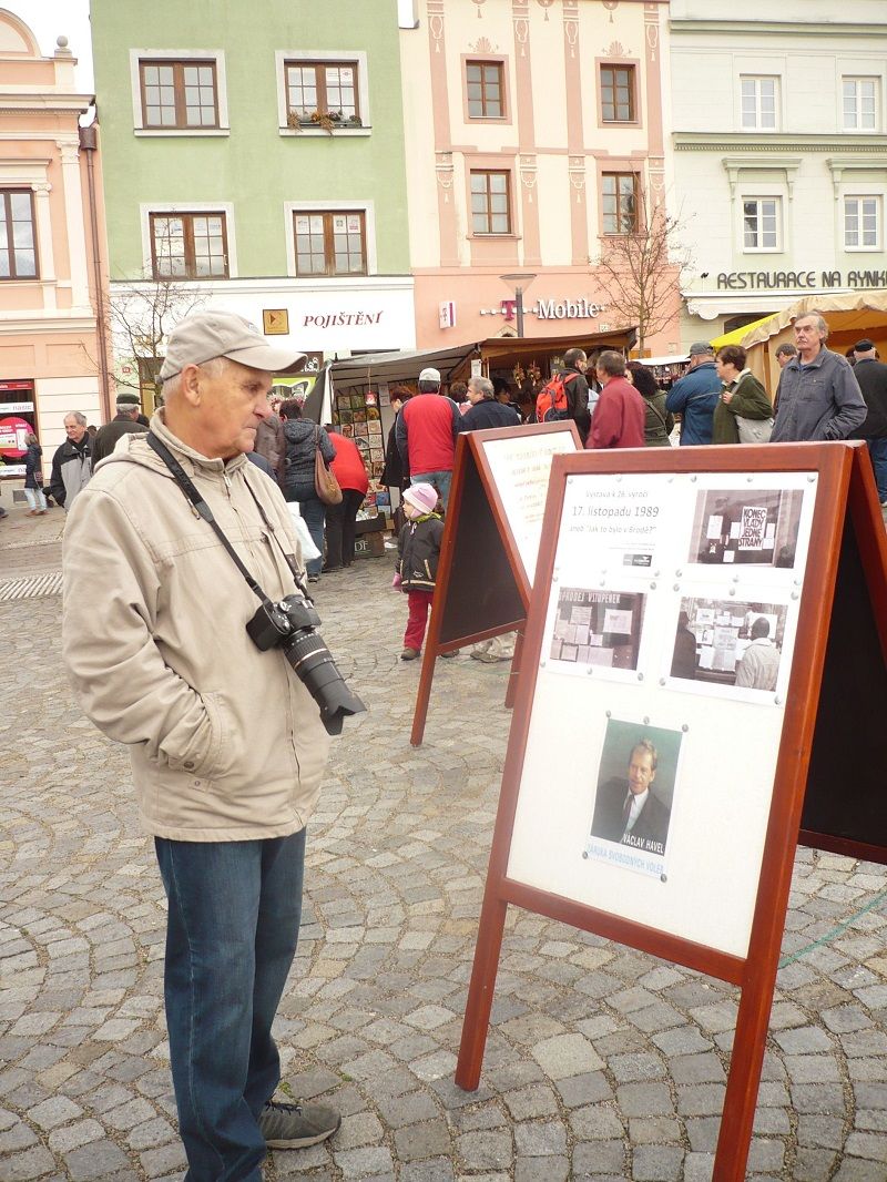 Škoda, že autoři výstavy k fotkám zapomněli napsat, kdo tenkrát v roce 1989 fotil události na tehdejším náměstí Československé armády. Autorem většiny fotografií je Jan Jelínek z Havlíčkova Brodu a fotky věnoval na výstavu bez nároku na honorář. Na trh řemesel chodí hodně lidí za hudbou.