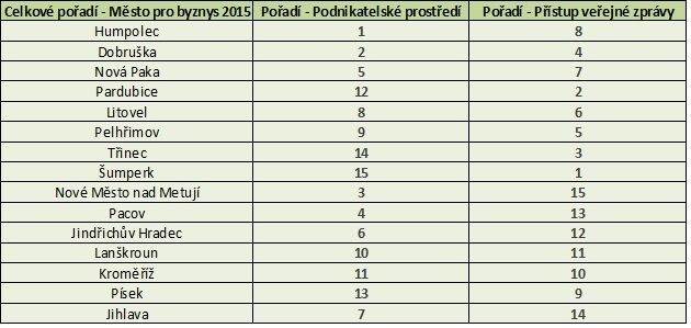 Nízká nezaměstnanost, vysoký podíl podnikatelů, firem i velkých zaměstnavatelů a velmi dobré hospodaření radnice. Hlavní důvody, které dělají z Humpolce nejlepší město pro podnikatele v České republice. Druhá skončila Dobruška. Bronz bere loňský vítěz, Nová Paka. Výzkum Město pro byznys 2015 hodnotí už osmým rokem 205 obcí s rozšířenou působností a 22 městských částí hlavního města České republiky. Výzkum zpracovává analytická agentura Datank.