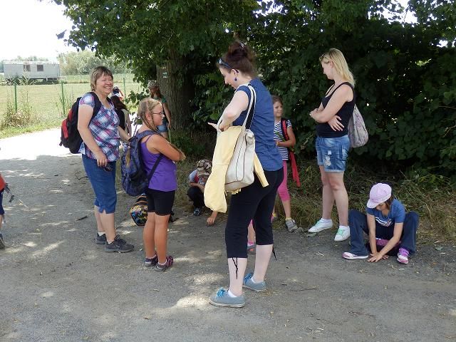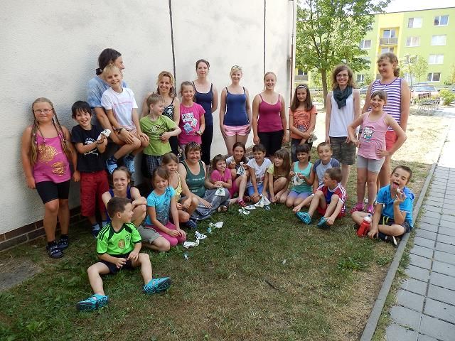 Po deváté hodiny se družina přesunula do Týnského údolí k vodě, kde hrály další hry a hledaly poklad. Po poledni byl poklad objeven v podobě velkého melounu na zahradě Centra.
