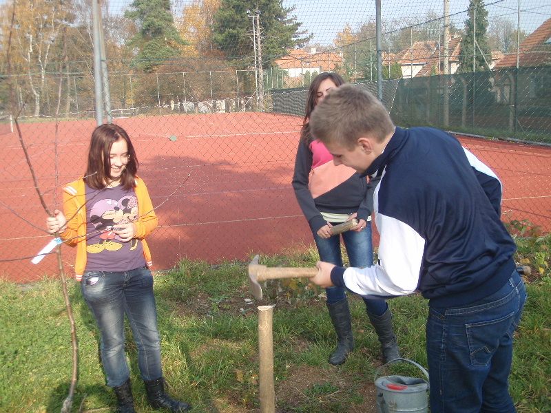 Žáci se seznámili v průběhu běžné výuky s nároky na pěstování a ošetřování jabloní. Sami si také vysadili dvě nové jabloně na školním pozemku.