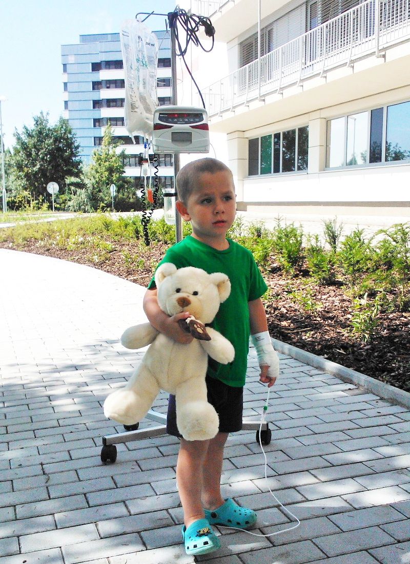 U Vojtíška se momentálně zhoršuje funkce střeva, porucha řeči, nedoslýchavost a opožděný růst se kombinují s neurologickým onemocněním a svalovou myopatií. Přesto všechno dělá Vojta radost rodičům a čest svému jménu, které znamená „usměvavý válečník.“