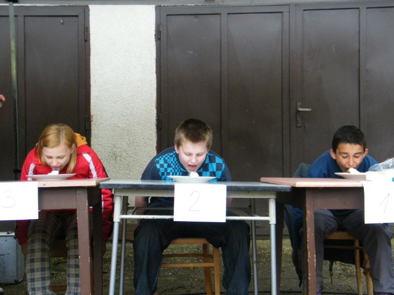 „V kategorii mladších se zúčastnilo celkem 34 soutěžících, z nichž první místo vybojoval Ondra Šálek z Pálovic, který dokázal sníst palačinku za 14,88 s.