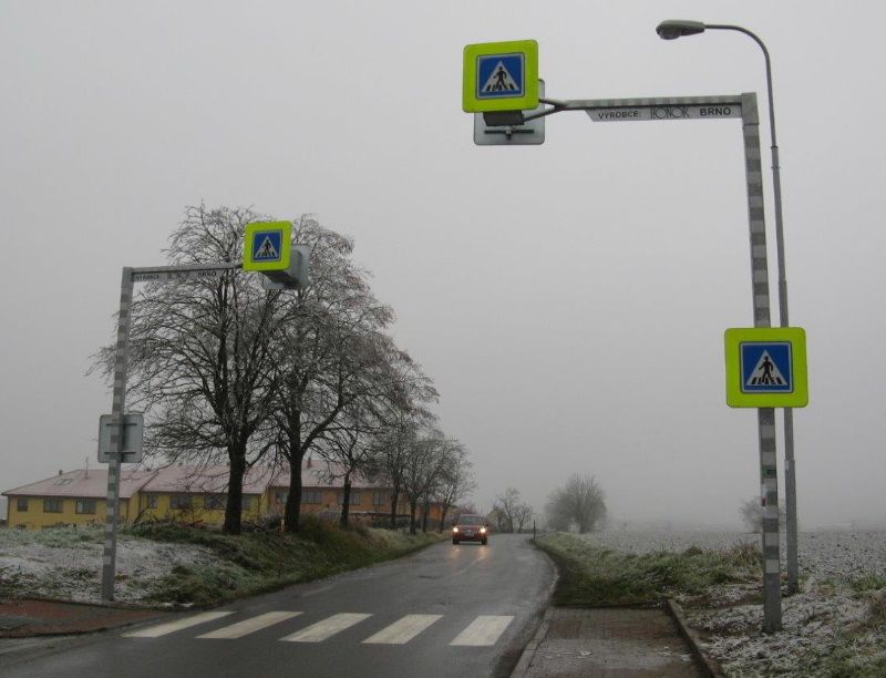 Nově vybudované osvětlení přechodů tvoří stožáry s výložníky s oboustrannými reflexními bezpečnostními polepy, asymetrické svítidlo s možností naklápění a příslušné dopravní značky.