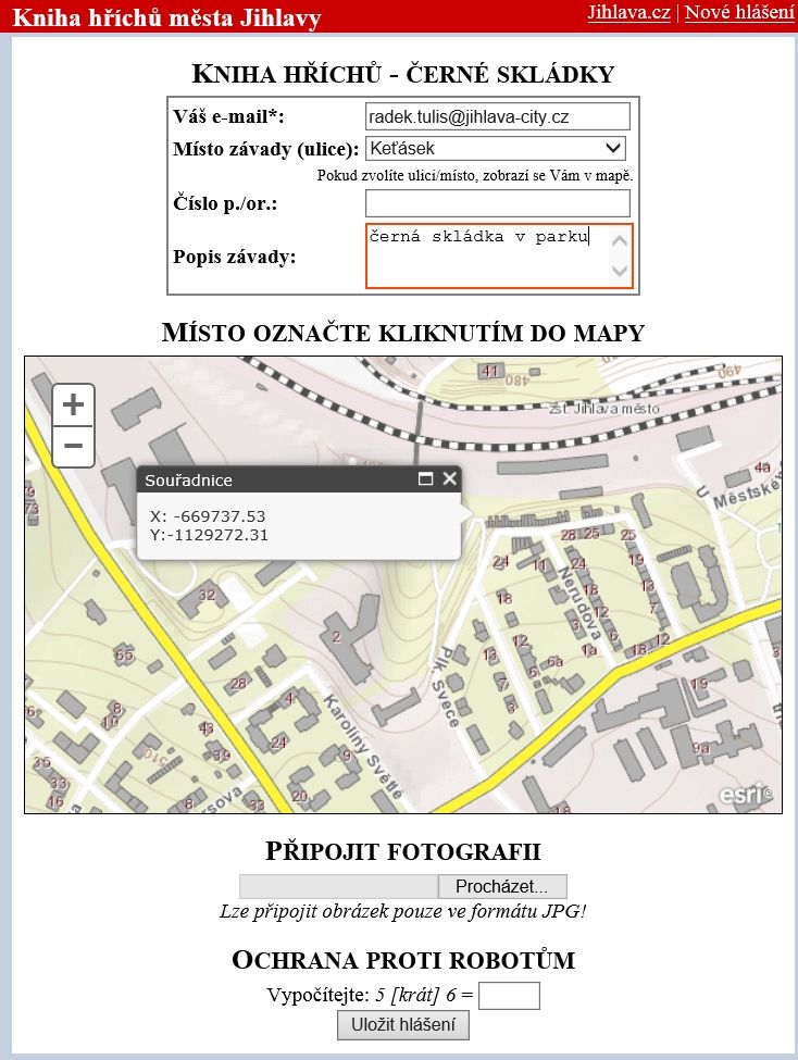 Každý, kdo najde odpad na černé skládce, vyplní na internetu formulář s mapkou, může přidat i fotografii. Přístup do aplikace je na adrese www.odpadyjihlavy.cz, nebo z webu města přes odkaz odpady.