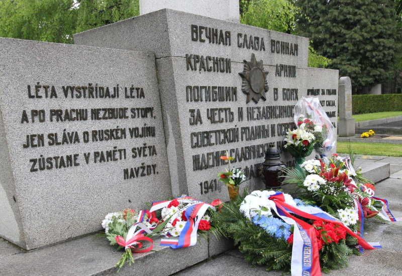 Přítomní uctili památku padlých u sousoší Zaváté šlépěje, hlavní část piety pak proběhla u památníku a hrobů padlých sovětských vojáků.