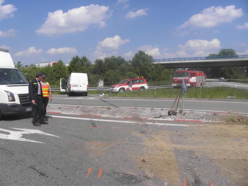 „Před Jihlavou řidič pravděpodobně usnul a v pravotočivé zatáčce vyjel vlevo mimo silnici. Přejel příkop a pokračoval v jízdě po travnatém svahu, přejel opět do příkopu, ve kterém narazil do kamenného svodu vody.