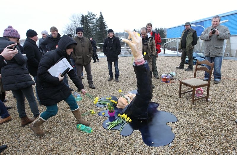 Přímo na stropě fermentoru bioplynové stanice k dříve instalované soše Karla Havlíčka Borovského přibyla nyní nová, netradiční, potápějící se socha dosluhujícího prezidenta, Václava Klause, který drží v ruce pověstné odcizené chilské pero.