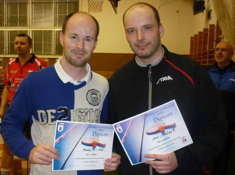 Krajský přebor mužů: 1. František Kanta (STEN marketing HB Ostrov) 2. Jan Jírek (TJ Žďár nad Sázavou) 3. Roman Veselský (TJ Žďár nad Sázavou) 4. Stanislav Hudec (TJ Žďár nad Sázavou) 5.-8. Aleš Svoboda (Sokol Jemnice) 5.-8. Igor Smola (SK Tenis Polesí) 5.-8. Daniel Bárta (Jiskra Havlíčkův Brod) 5.-8. Radek Krčál (Slavoj Polná) Krajský přebor žen: 1. Pavla Růžičková (SKST Třešť) 2. Šárka Pikolonová (Sokol Brtnice) 3. Adéla Píšová (SK Jihlava) 4. Jarmila Fenclová (SKST Kamenice nad Lipou) 5. Anna Zábojová (Spartak Pelhřimov) 6. Veronika Mračková (Jiskra Humpolec) Čtyřhra mužů: 1. Roman Veselský - Jan Jírek (oba TJ Žďár nad Sázavou) 2. František Kanta - Šimon Jadrný (oba STEN marketing HB Ostrov) 3.-4. Jiří Palát (TJ Třebíč) - Aleš Svoboda (Sokol Jemnice) 3.-4. Tomáš Veselský - Stanislav Hudec (oba TJ Žďár nad Sázavou) Čtyřhra žen: 1. Adéla Píšová (SK Jihlava) - Šárka Pikolonová (Sokol Brtnice) 2. Jarmila Fenclová (SKST Kamenice nad Lipou) - Pavla Růžičková (SKST Třešť) 3. Veronika Mračková (Jiskra Humpolec) - Anna Zábojová (Spartak Pelhřimov) Smíšená čtyřhra: 1. Adéla Píšová - Vladan Brom (oba SK Jihlava) 2. Šárka Pikolonová (Sokol Brtnice) - David Škrdla (SK Jihlava) 3.-4. Pavla Růžičková - Václav Jeřábek (oba SKST Třešť) 3.-4. Veronika Mračková (Jiskra Humpolec) - Stanislav Zápotočný (Spartak Pelhřimov) Na titulní fotografii vítězné trio krajského přeboru mužů (zleva): František Kanta, Jan Jírek a Roman Veselský (Foto: Miloslav Kotil)Autor: Martin Pluhař