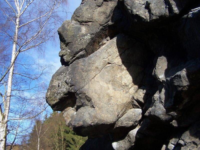 Na cyklotrase vedoucí z Jihlavy do Raabsu si můžeme povšimnout profilu ježibaby s piersingem na Helenínské skále i hrnců v korytě řeky Jihlavy známé spíše z koryta šumavské řeky Vydry.