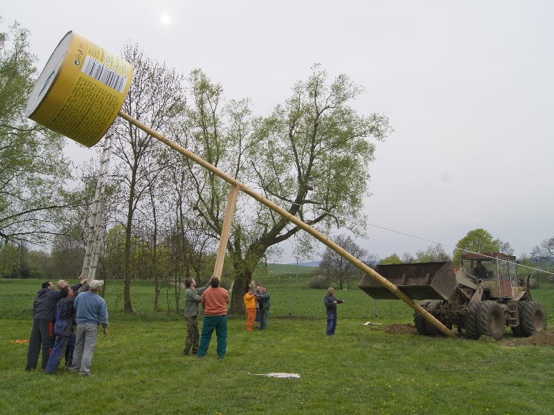 V Radkovicích u Budče mají letos na šestnáctimetrové dřevěné kulatině, která je dohladka odkorněna, zvětšeninu plechovky od paštiky Májka. Plechovka má dva metry v průměru a je 1,4 metru vysoká.