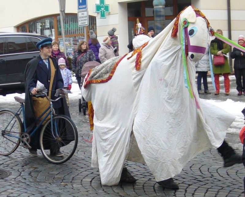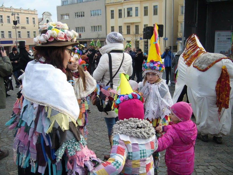 „V masopustním průvodu bylo letos 75 masek. Některé z nich byly nové, např. beruška či doktor se sestřičkou. Nesměly chybět samozřejmě masky tradiční jako slamák, kuchař, kobyla, řezník, švec, kat, medvěd s medvědářem a další. Čilého vyšetřování se chopila porodní bába,“ komentuje masopustní veselí Anna Doleželová, koordinátorka mateřského centra Zvoneček.
