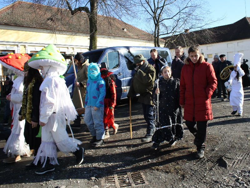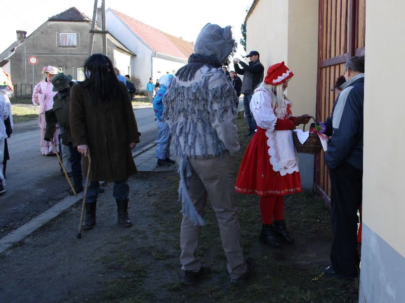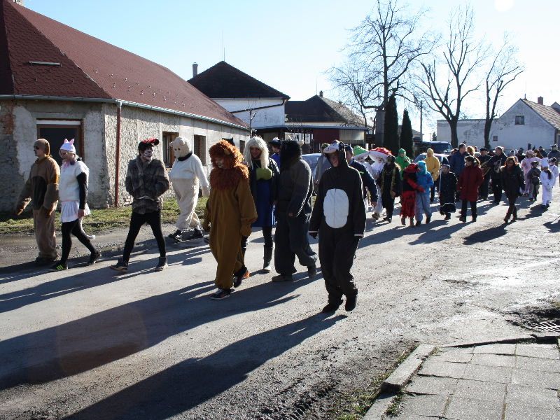 Na tři desítky maškar prošly za doprovodu přihlížejících a kolemjdoucích dědinou, obešly jednotlivá stavení, nechaly zahrát hospodáři písničku podle přání a hlavně popřály hodně zdraví a štěstí, aby si tak vysloužily odměnu v podobě malého sladkého pohoštění, masopustních koblih a božích milostí a ti co mohli nějakého pohárku domácí slivovičky nebo ořechovky.