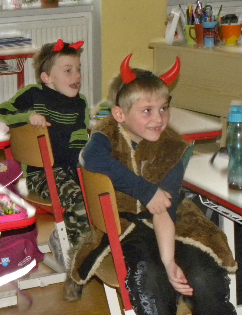 Protože všechny hříchy starších žáků přečetla čertice z knihy hříchů, musely děti slíbit, v čem se zlepší, jako první krok k nápravě si připravily básničky a mladší děti, které prý vůbec nezlobí, zazpívaly. Pak každý dostal balíček sladkostí.