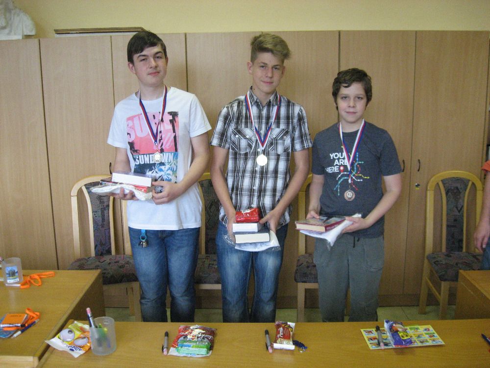 V kategorii prvního stupně zvítězil Tomáš Němec, druhý skončil Matěj Jirák oba vybojovali pět bodů, o pořadí rozhodlo pomocné hodnocení, třetí místo vybojoval Jakub Atia, všichni tři žáci 5. C.