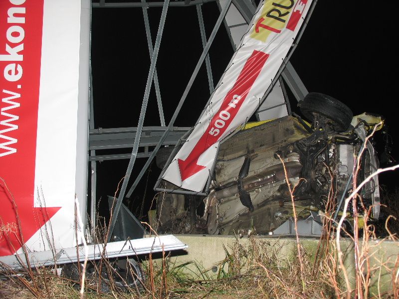 Mladík se dostal s vozem Audi A3 mimo silnici a prorazil billboard a skončil na boku. „Vozidlo jelo po místní komunikaci a v prostoru křižovatky vyjelo mimo vozovku, kde narazilo do svodidel a poté do kovové konstrukce reklamní tabule. Nárazem se poškodil také sloup veřejného osvětlení.